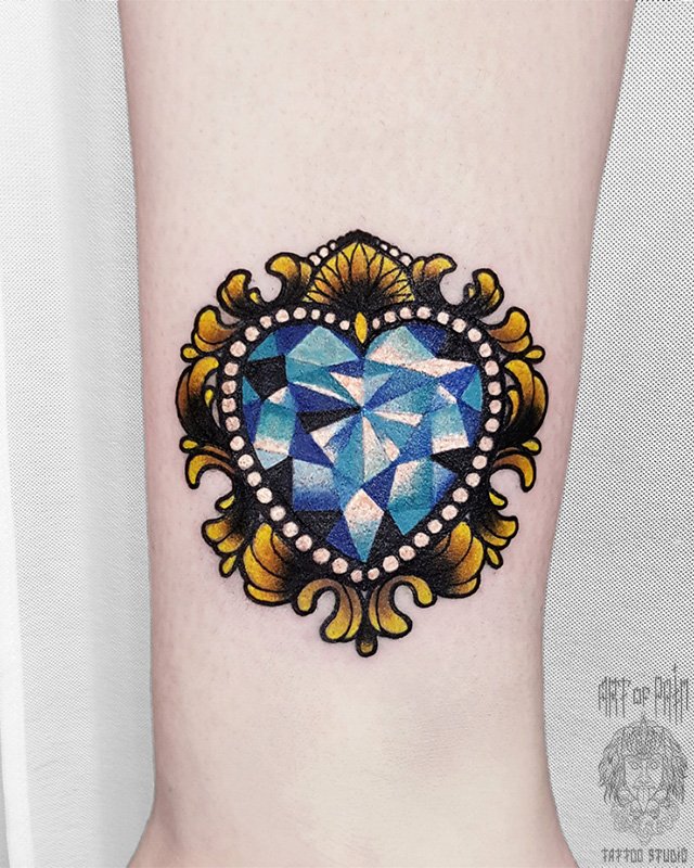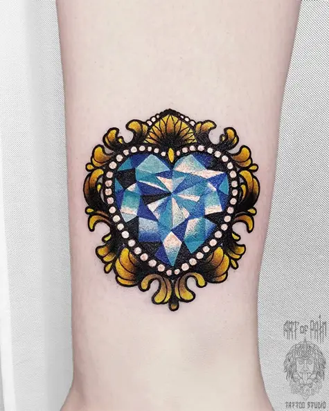 Татуировка женская нью-скул на щиколотке бриллиант 4121