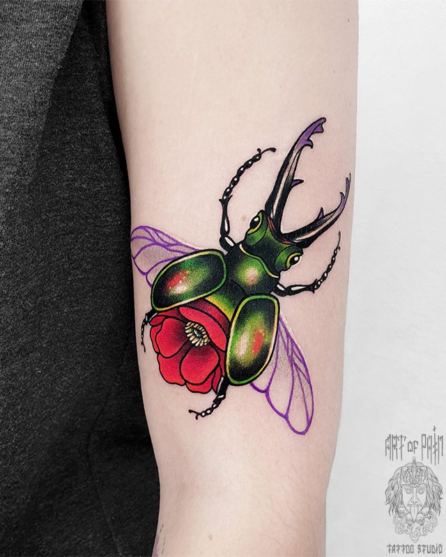 Татуировка женская нью-скул на предплечье жук 4126