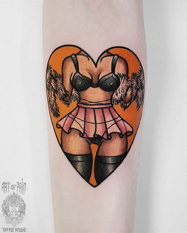 Татуировка женская нью-скул на предплечье девушка танцовщица 4142