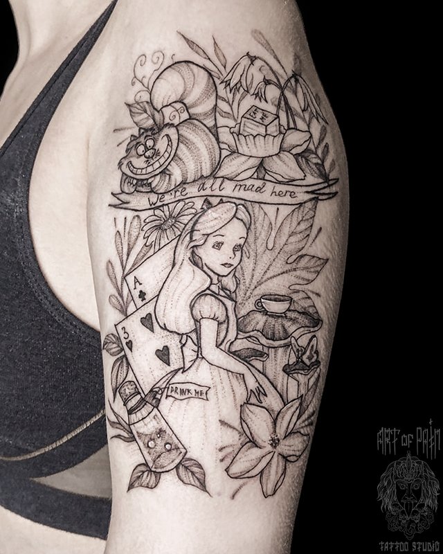 Татуировка женская графика на плече Алиса в стране чудес (Мария Котова) 4224