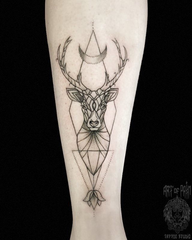 Татуировка женская графика на голени олень, геометрия (Мария Котова) 4225