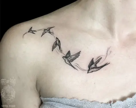 Татуировка женская графика на ключице птички (Мария Котова) 4232