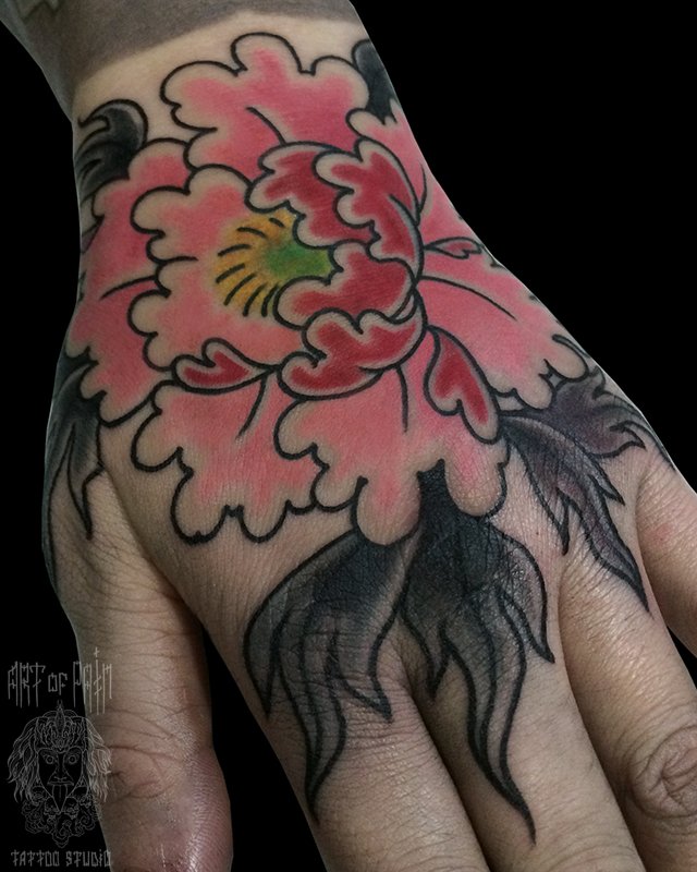 Татуировка женская япония на кисти пион 4311