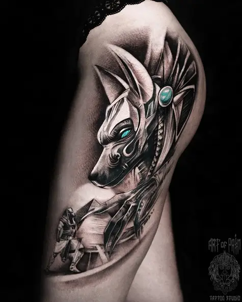 Татуировка женская фентези на бедре анубис (Слава Tech Lunatic) 4322