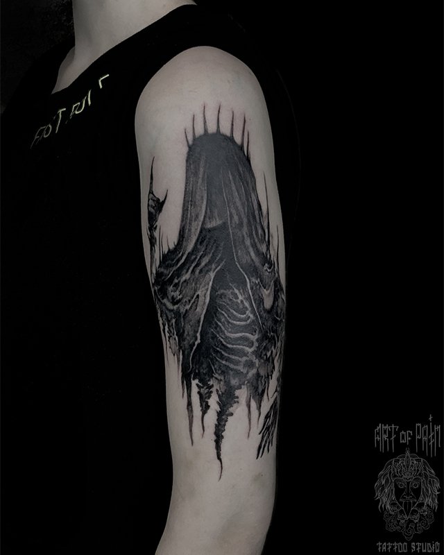 Татуировка женская хоррор на плече призрак 4414