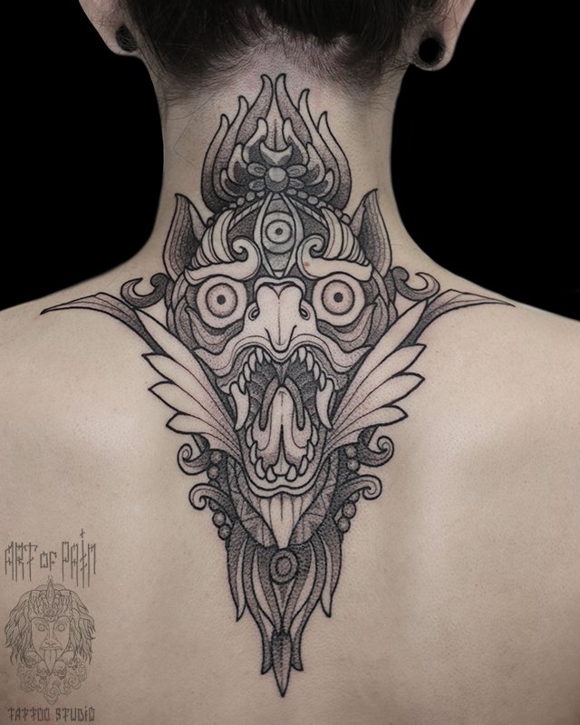 Татуировка женская графика на спине гаруда 4468
