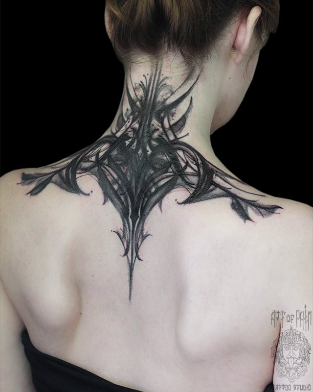 Татуировка женская графика на шее узор (абстракция) 4483