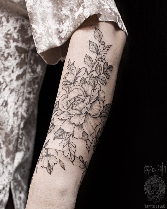 Татуировка женская графика на предплечье дикие цветы (Мария Котова) 4523