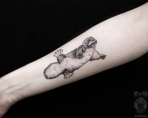 Татуировка женская графика на предплечье утконос (Мария Котова) 4545
