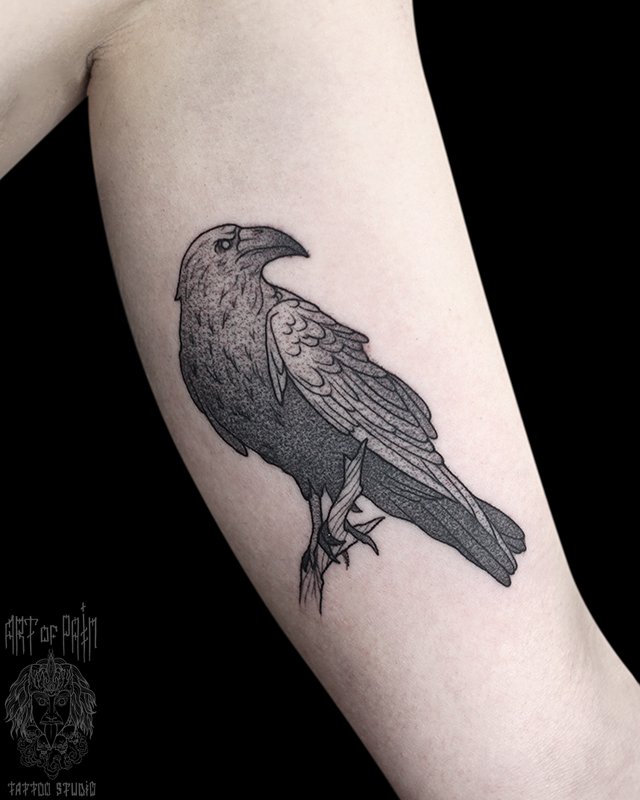 Татуировка женская графика на руке ворон 4610