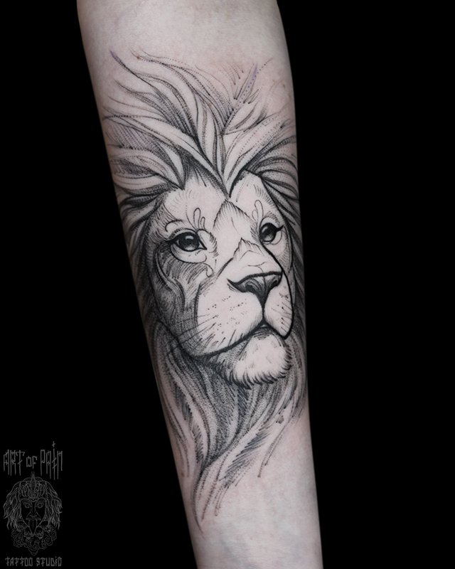Татуировка женская графика на предплечье голова льва 4619