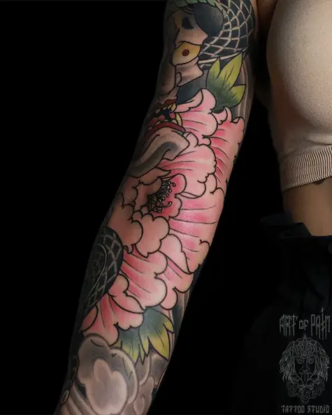 Татуировка женская япония на руке пион 4636