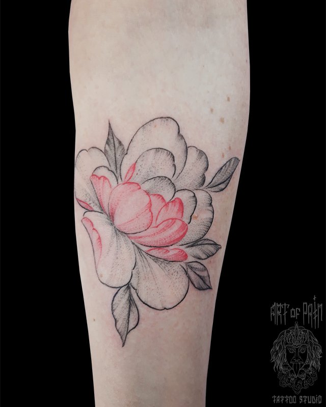 Татуировка женская графика на предплечье цветок с красными лепестками 4646