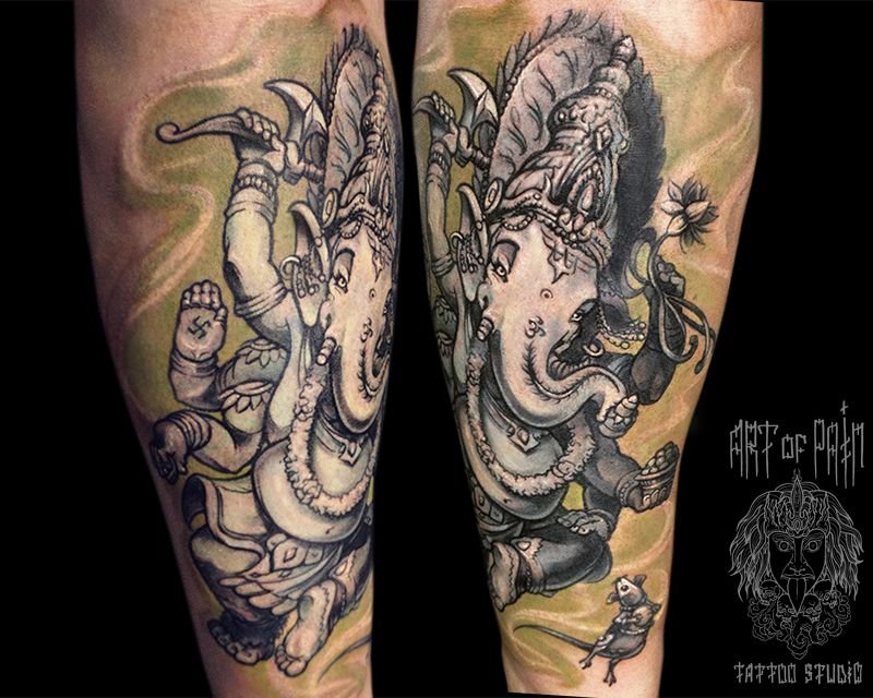 Татуировка женская графика на предплечье ганеша 468