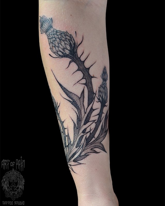 Татуировка женская графика на предплечье репейник (Надежда Полякова) 4742