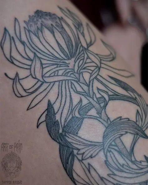 Татуировка женская графика на бедре цветок большой (Надежда Полякова) 4760