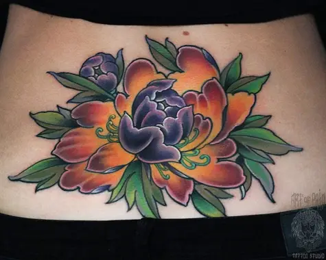 Татуировка женская япония на пояснице пион (Юрий Хандрыкин) 4782