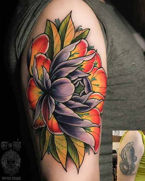 Татуировка женская япония на плече пион (Юрий Хандрыкин) 4785