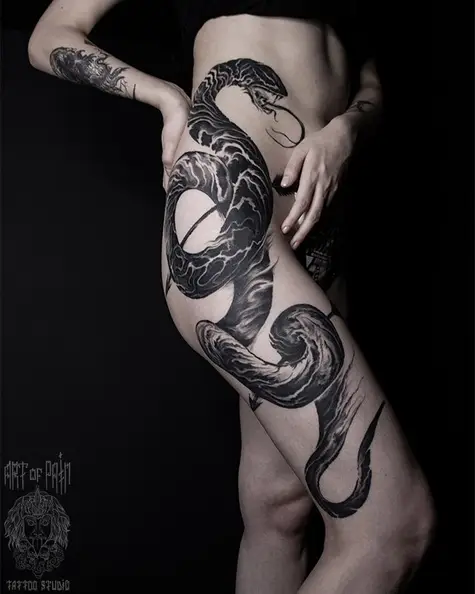 Татуировка женская графика на ноге змея 4796