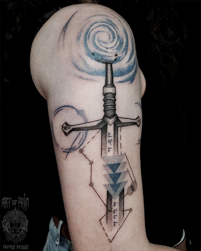 Татуировка женская графика на плече меч (Николай Орф) 4825