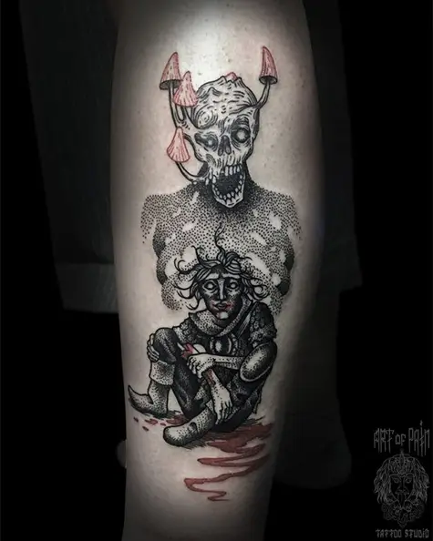 Татуировка женская графика на голени монстр (Николай Орф) 4833