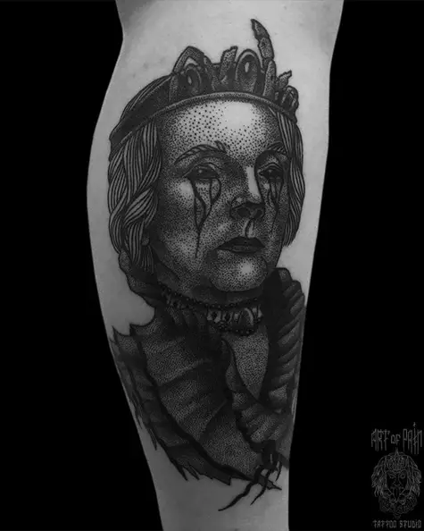 Татуировка женская графика на голени портрет (Николай Орф) 4839