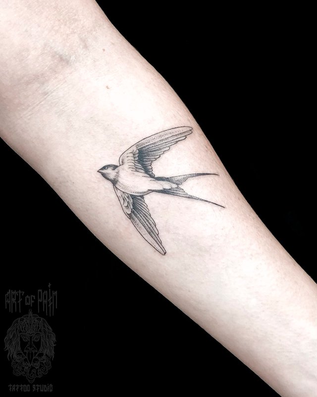 Татуировка женская графика на предплечье ласточка (Мария Котова) 4864