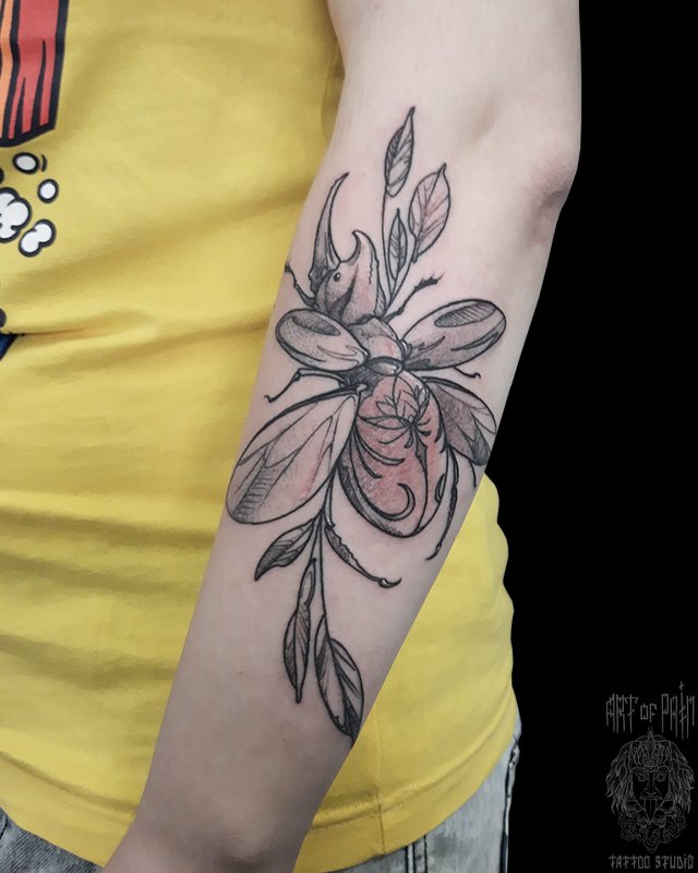 Татуировка женская графика на предплечье жук 4878