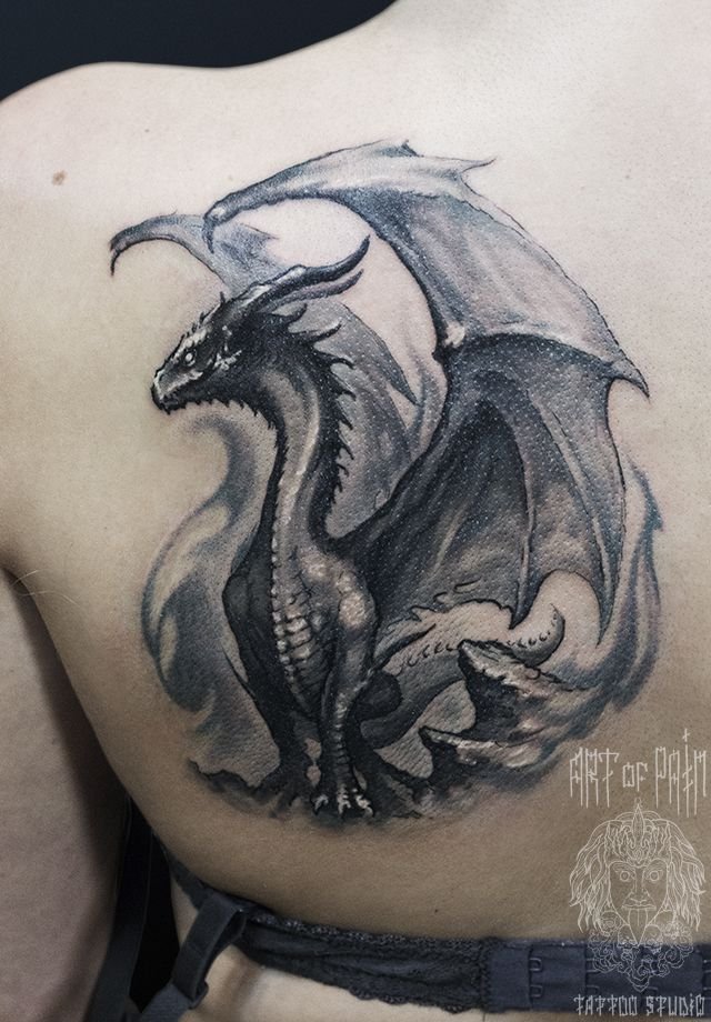 Татуировка женская фентези на лопатке дракон 493