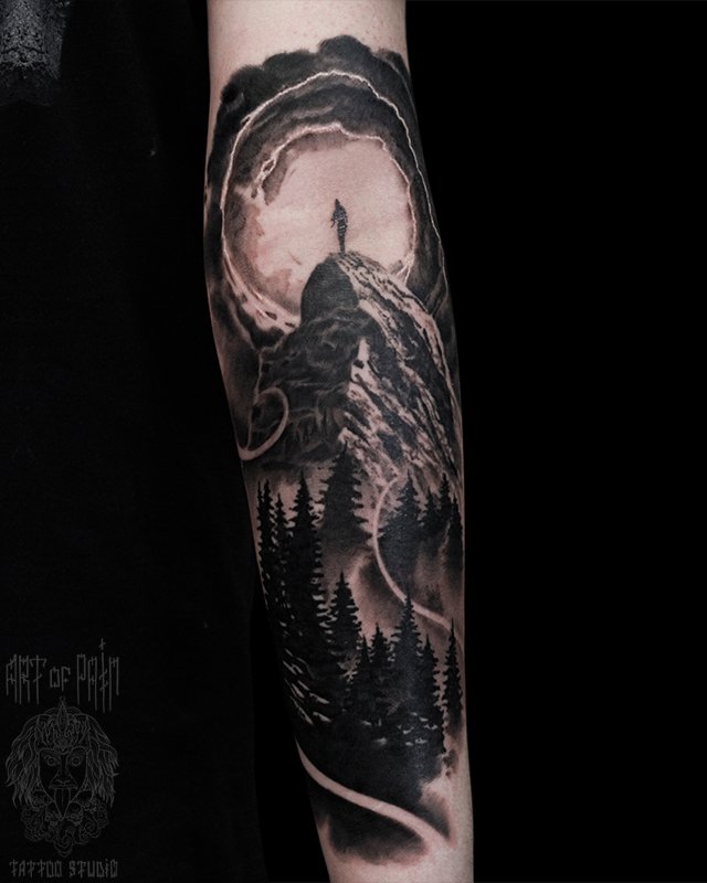 Татуировка женская реализм на предплечье пейзаж (Александр Pusstattoo) 4938