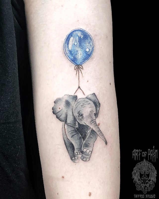 Татуировка женская графика на руке слоненок (Мария Котова) 4945