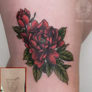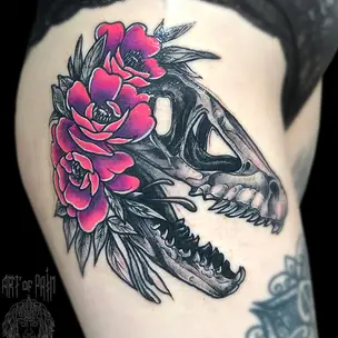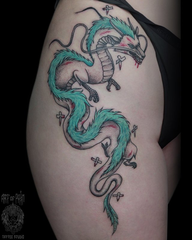 Татуировка женская нью-скул на бедре дракон (Анастасия Родина) 4950