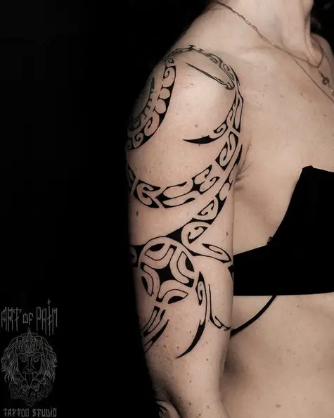 Татуировка женская полинезия на плече узор (Юрий Хандрыкин) 5018