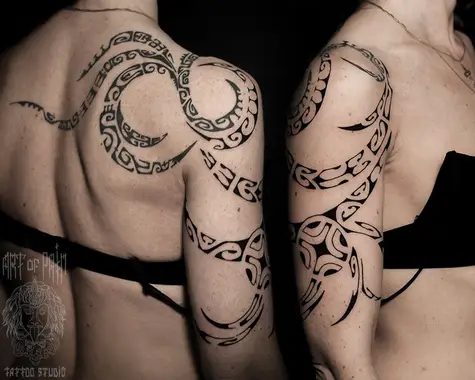 Татуировка женская полинезия на плече и спине узор (Юрий Хандрыкин) 5020