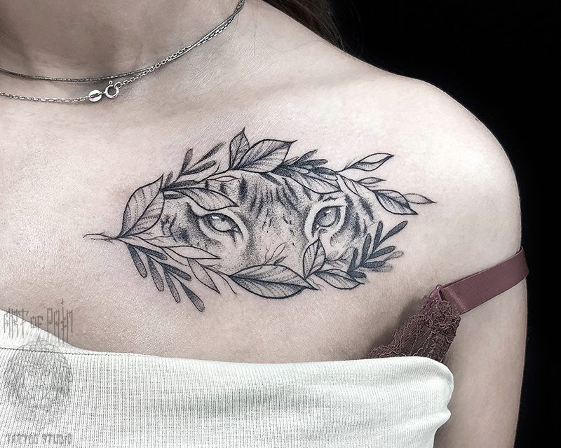 Татуировка женская графика на груди глаза (Мария Котова) 5065