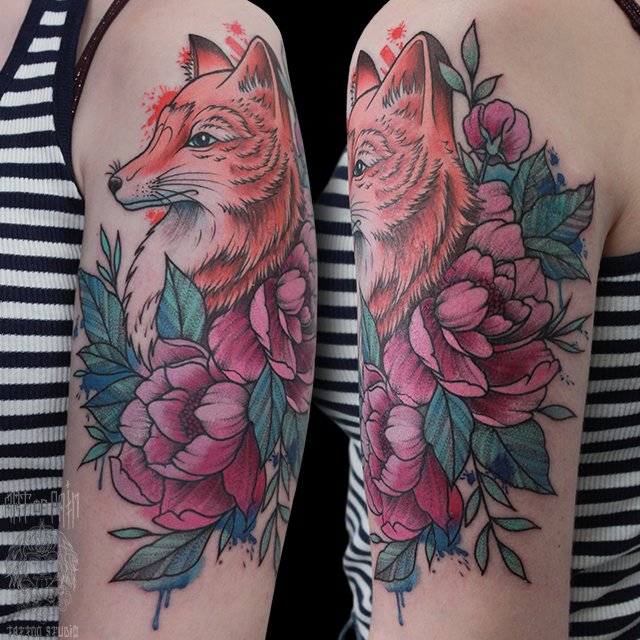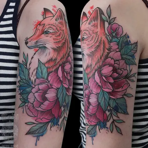 Татуировка женская нью скул на плече лиса (Анастасия Родина) 5068