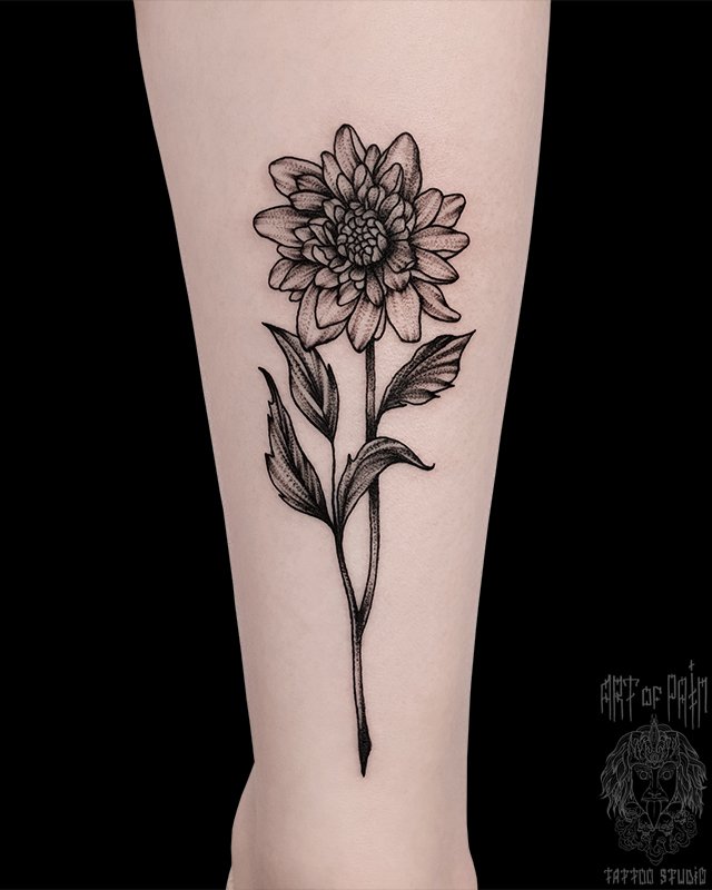 Татуировка женская графика на голени цветок 5078