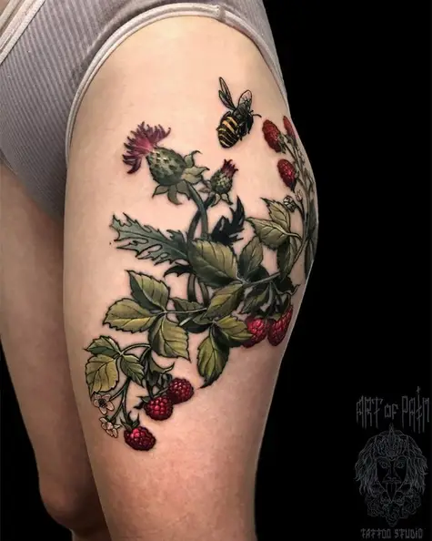 Татуировка женская реализм на бедре ягоды (Вячеслав Плеханов) 5086
