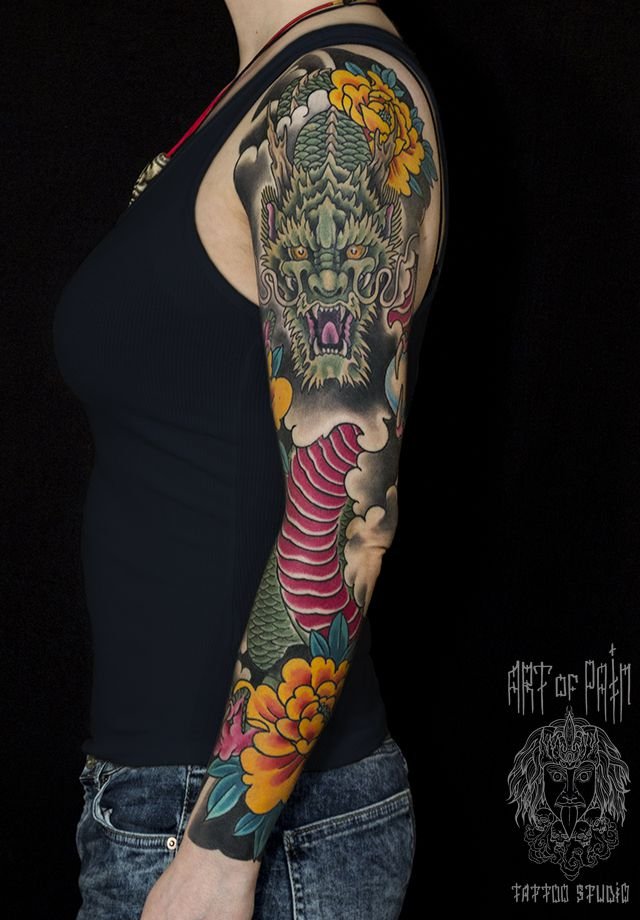 Татуировка женский рукав в стиле Япония с драконом (Ольга Добрякова) 508