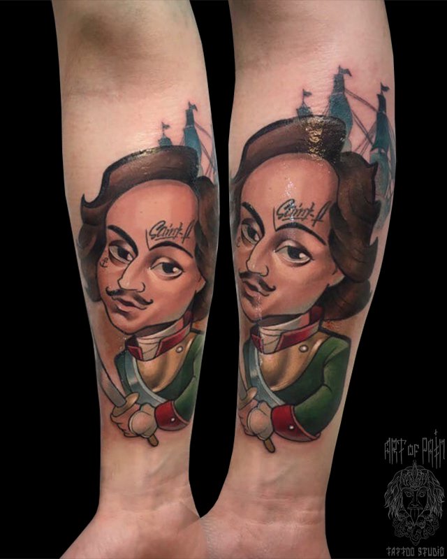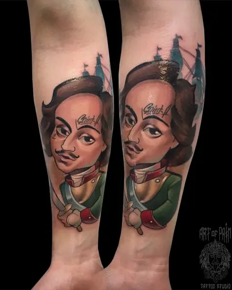 Татуировка женская нью скул на предплечье Пётр I 5178