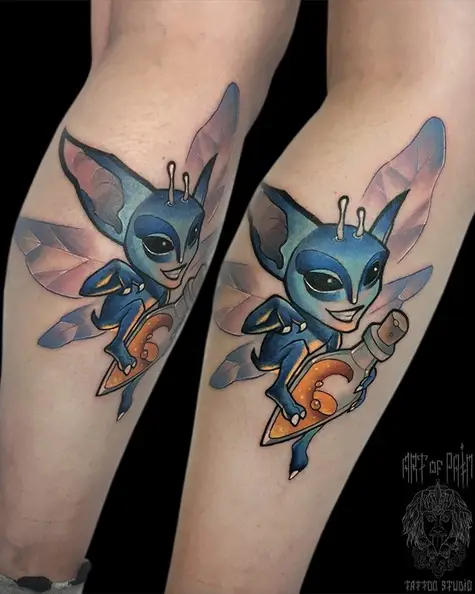 Татуировка женская нью скул на голени пикси 5188