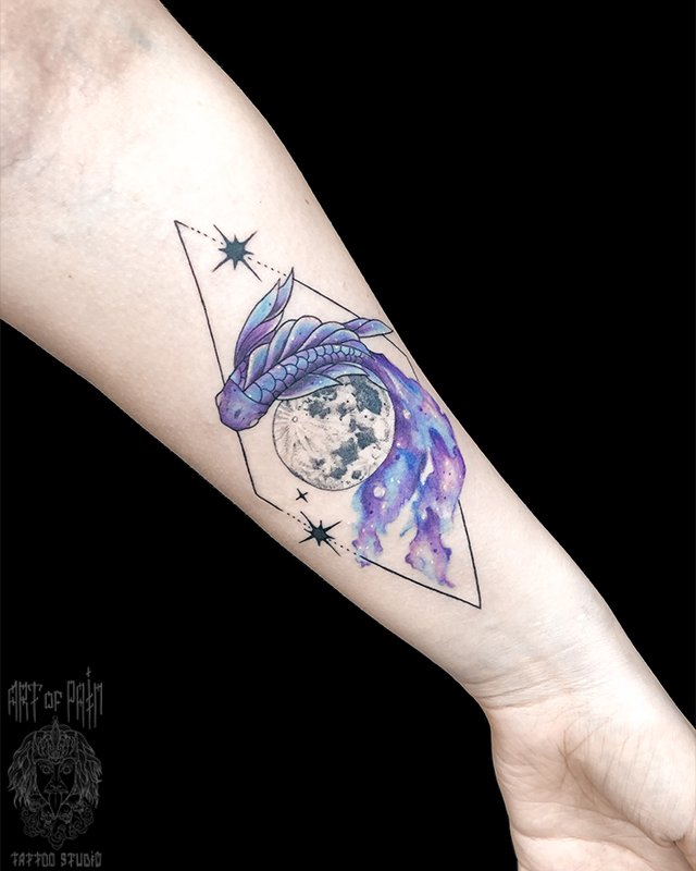 Татуировка женская акварель на предплечье рыба космос (Мария Котова) 5205