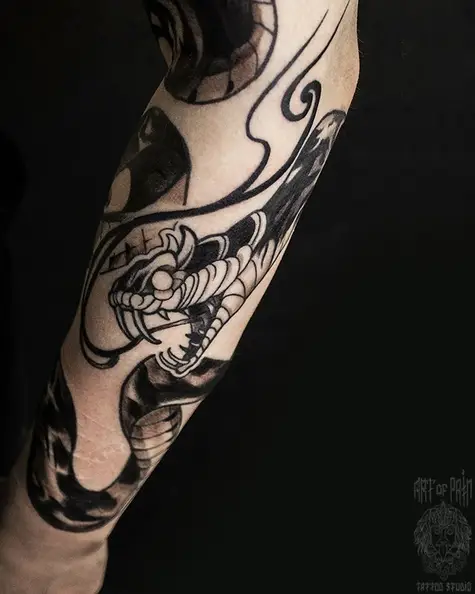Татуировка женская япония на предплечье змея и кинжал 5216
