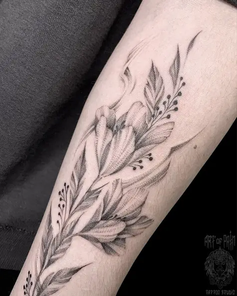 Татуировка женская графика и дотворк на предплечье цветы 5225