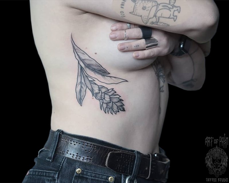 Татуировка женская графика на боку растение (Надежда Полякова) 5259