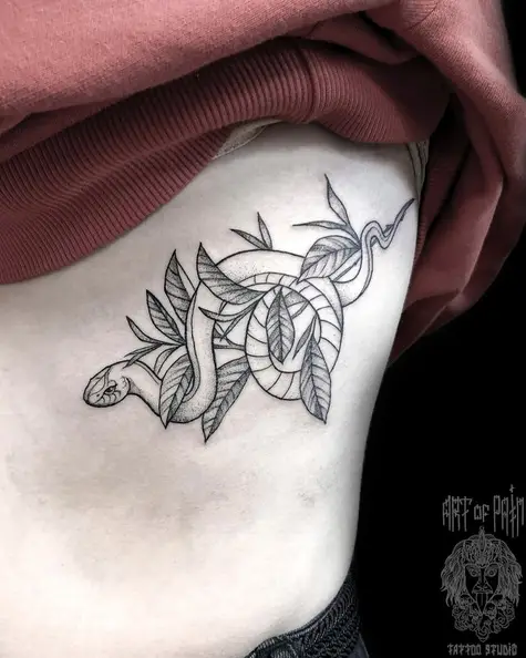 Татуировка женская графика на боку змея и веточка (Мария Котова) 5271
