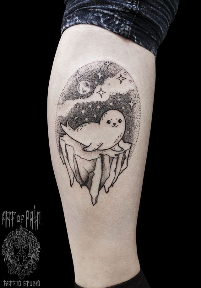 Татуировка женская графика на икре животные (тюлень) 530