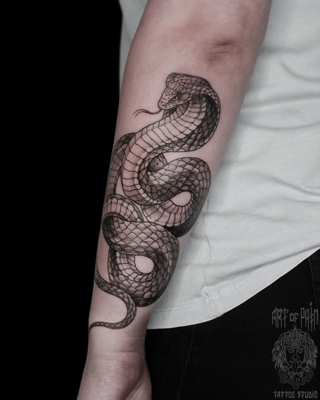 Татуировка женская графика на предплечье змея кобра 5319