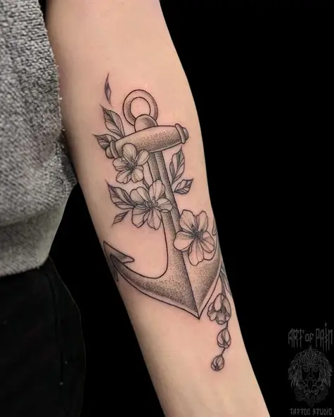 Татуировка женская графика на предплечье якорь 5342