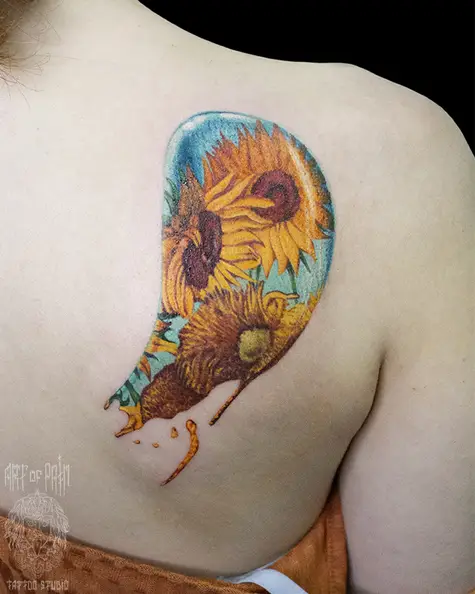 Татуировка женская нью скул на лопатке подсолнухи (Анастасия Родина) 5432
